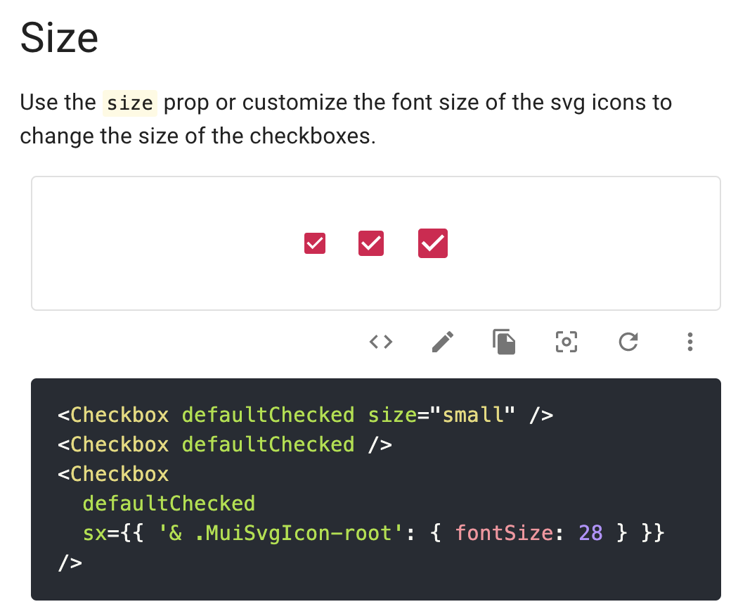 sxprop where possible. When a component needs to render styles based on the provided props, we have used thestyledAPI. Effectively,makeStyleandwithStyleshave been removed from the demos (we will deprecate these modules later on). You can subscribe to material-ui#16947 to be notified once finished.๐ We have used the update of the documentation as an opportunity to break down the demos into smaller single-focus ones, with inline previews. For instance: